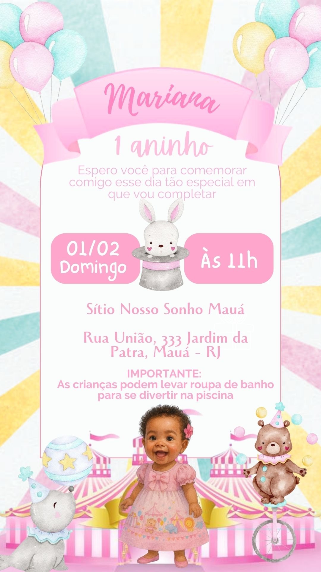 Princesa Mariana, que seu primeiro aninho nessa terra seja de muito amor e alegria, que nessa data em especial do dia da sua festa, você possa curtir e aproveitar cada detalhe, para que seja inesquecível não só para você mas para toda família, que você seja um canal de Deus na vida dos seus papais e dos seus irmãos, você é preciosa ❤️.